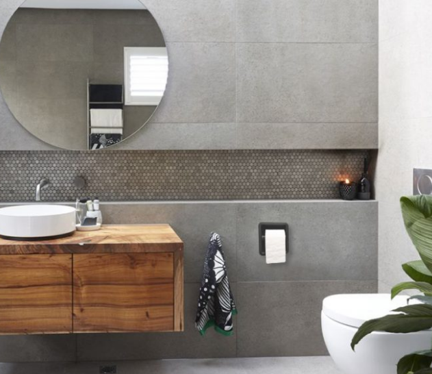 Blends effortlessly with contemporary fixtures and bathroom designs.